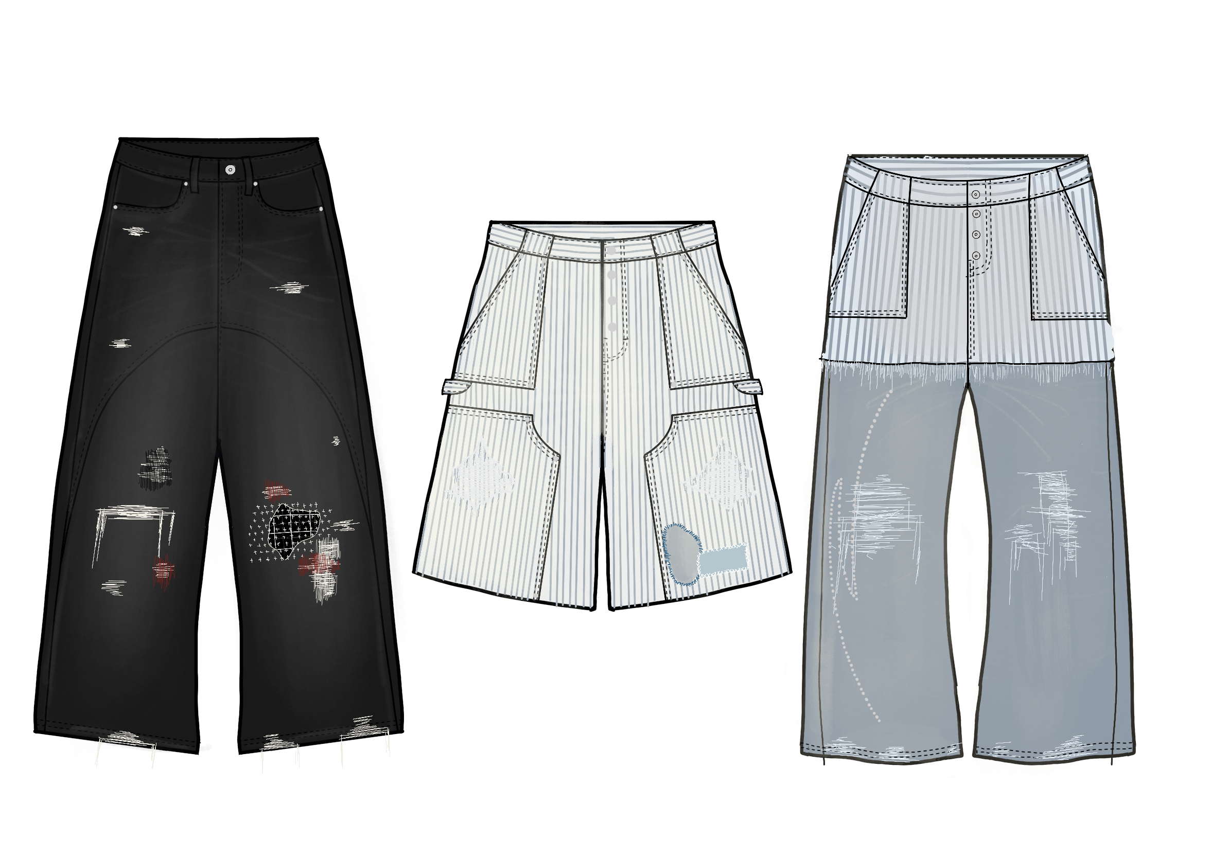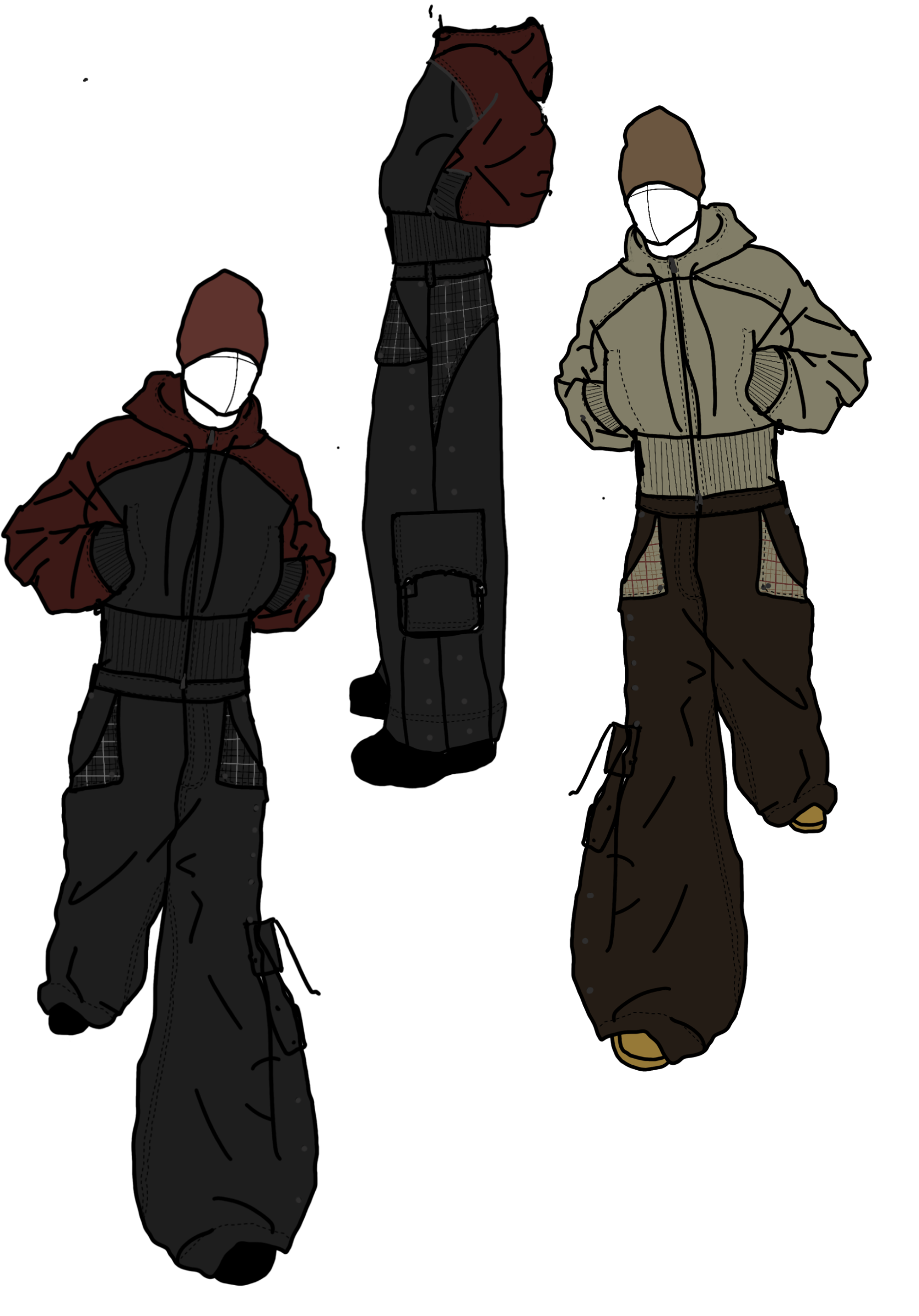 Expressive, detailed hand drawn illustrations that capture silhouette, mood, and fabric movement - serving as the foundation for each collections visual identity and design development.